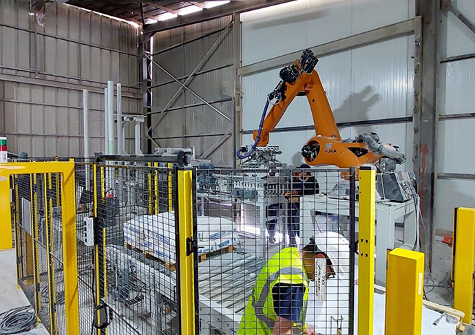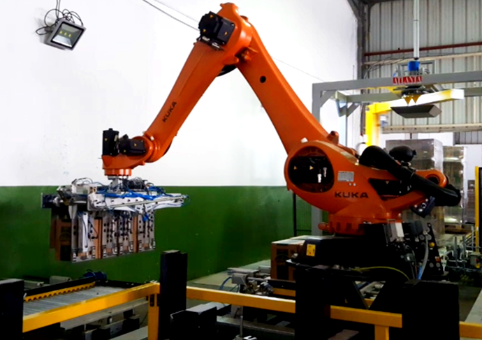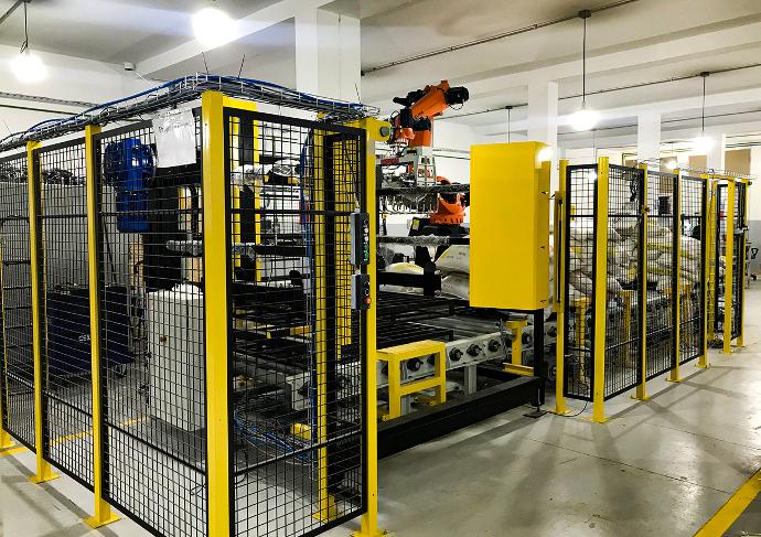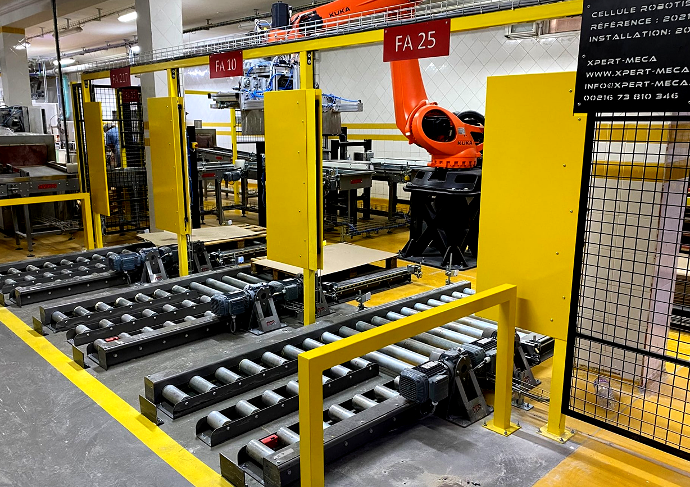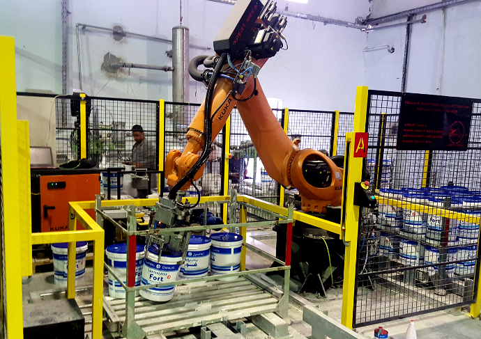 Robot de palettisation de seaux de peinture